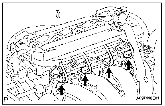 4. Disconnect the 4 fuel injector connectors.