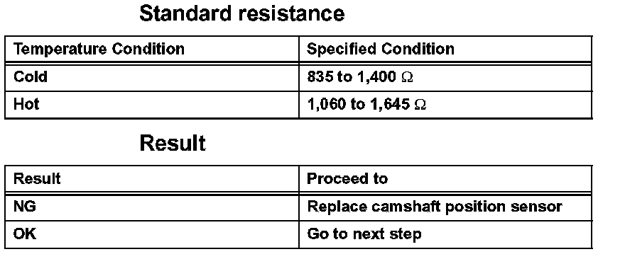 4. Check the resistance of the camshaft position sensor.
