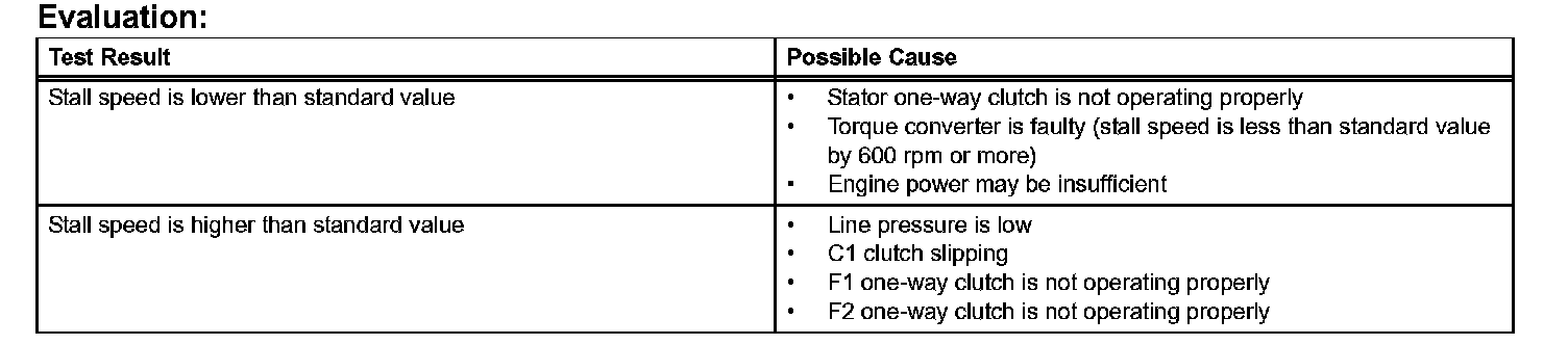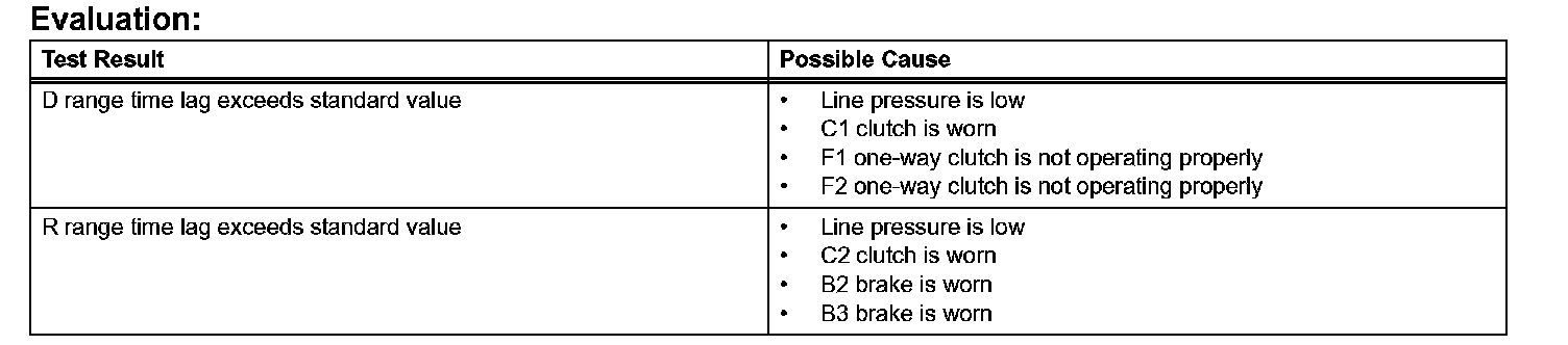 HINT: This test is to check the condition of the direct clutch, forward clutch, 1st brake and reverse brake.