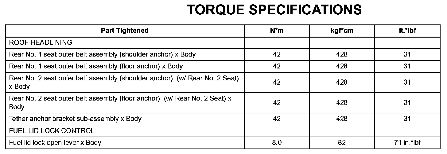Interior - Torque Specifications: