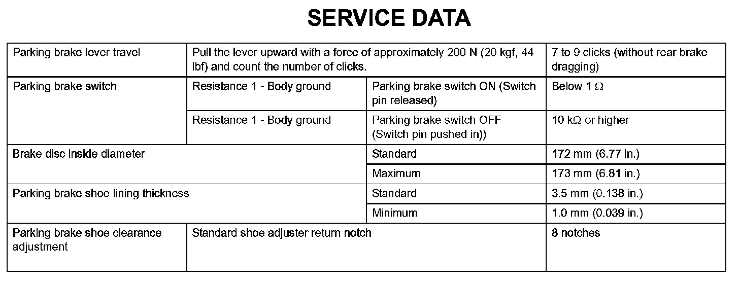 Parking Brake - Service Data:
