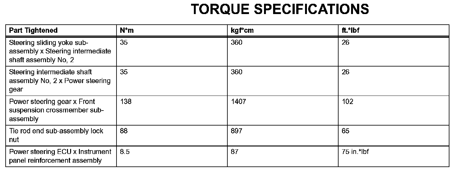 Power Steering - Torque Specifications:
