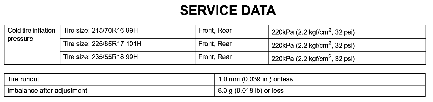 Tire And Wheel - Service Data: