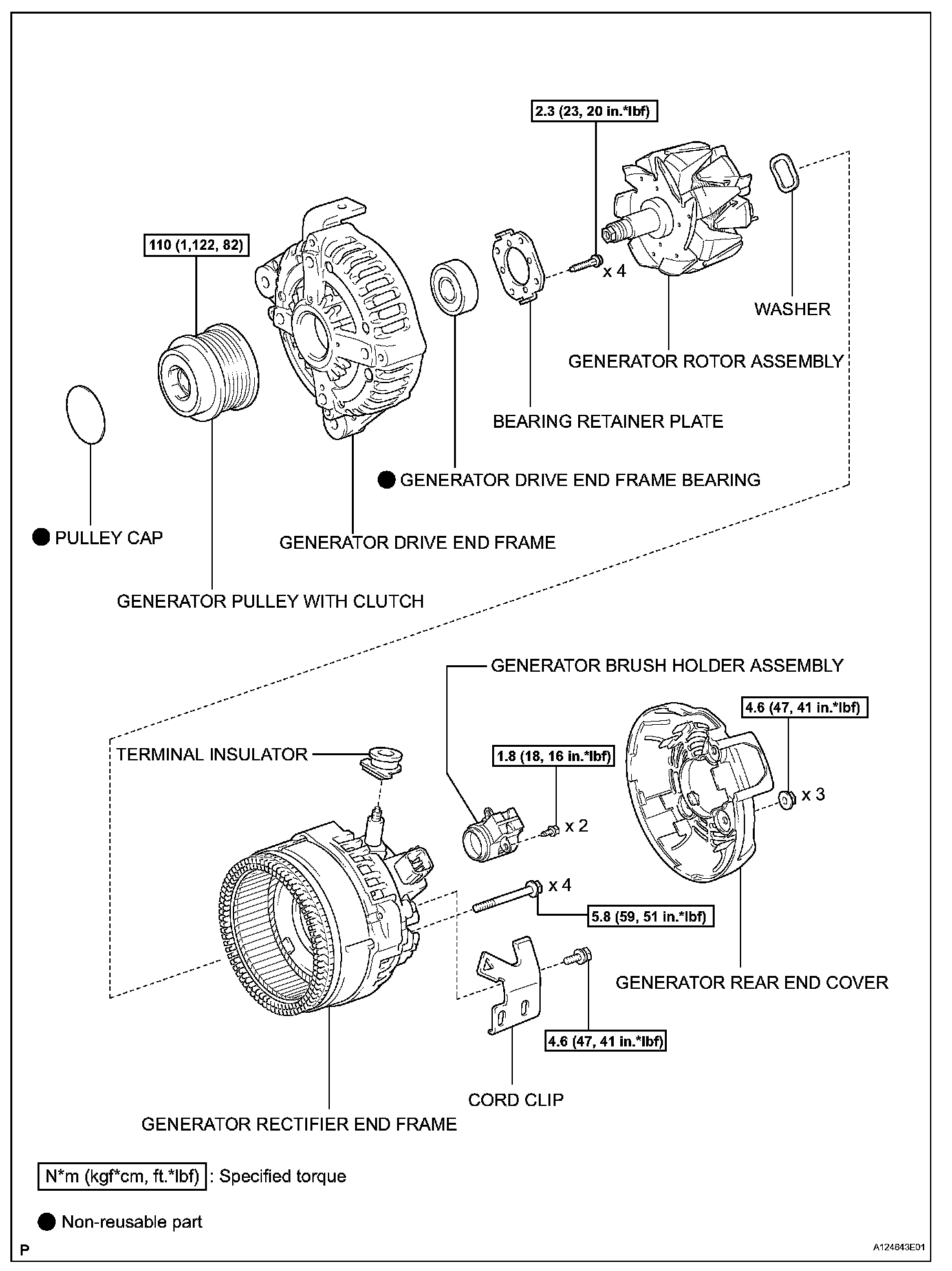 Torque: 4.6 N.m (47 kgf.cm, 41 in.lbf)