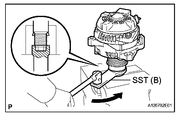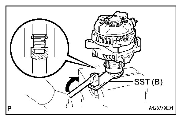 c. Turn SST (B) counterclockwise to tighten the pulley.