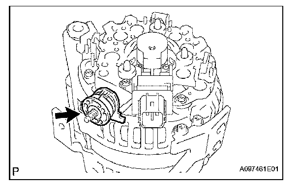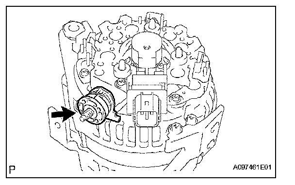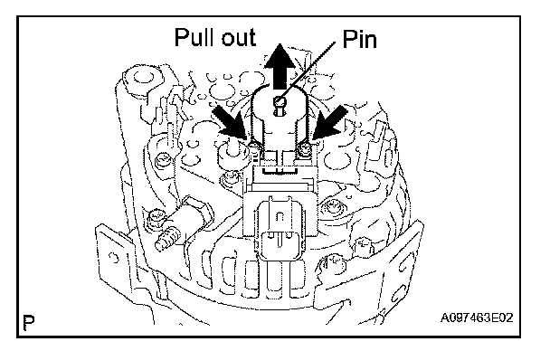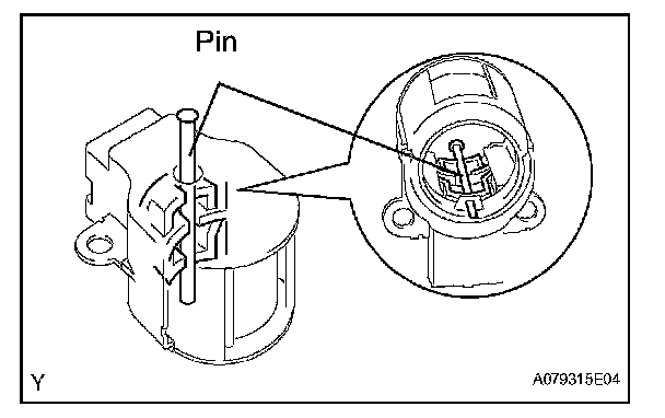 a. While pushing the 2 brushes into the generator brush holder, insert a 1.0 mm (0.039 in.) pin into the generator brush holder.