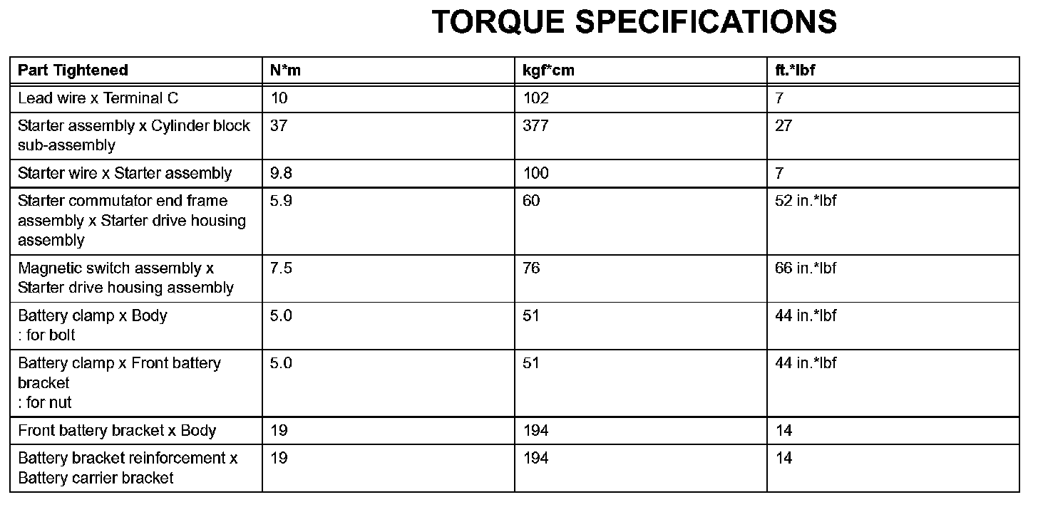 Starting - Torque Specifications: