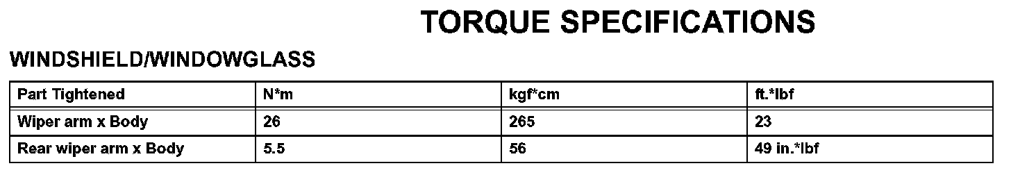 Windshield / Windowglass - Torque Specifications: