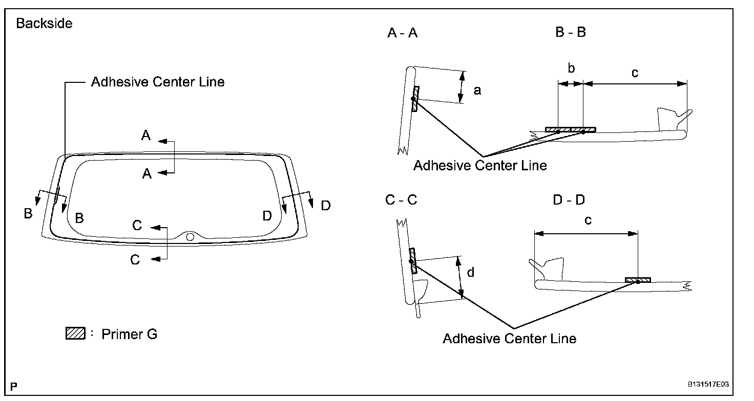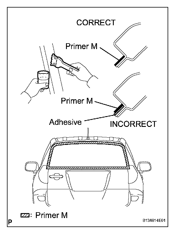 b. Using a brush or sponge, apply Primer G to the contact surface of the back door glass.