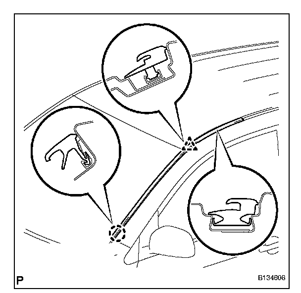 b. Install the windshield outside moulding, as shown in the illustration.