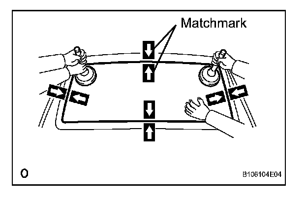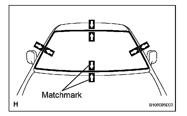 e. Place matchmarks over the glass and vehicle body on the locations indicated in the illustration.