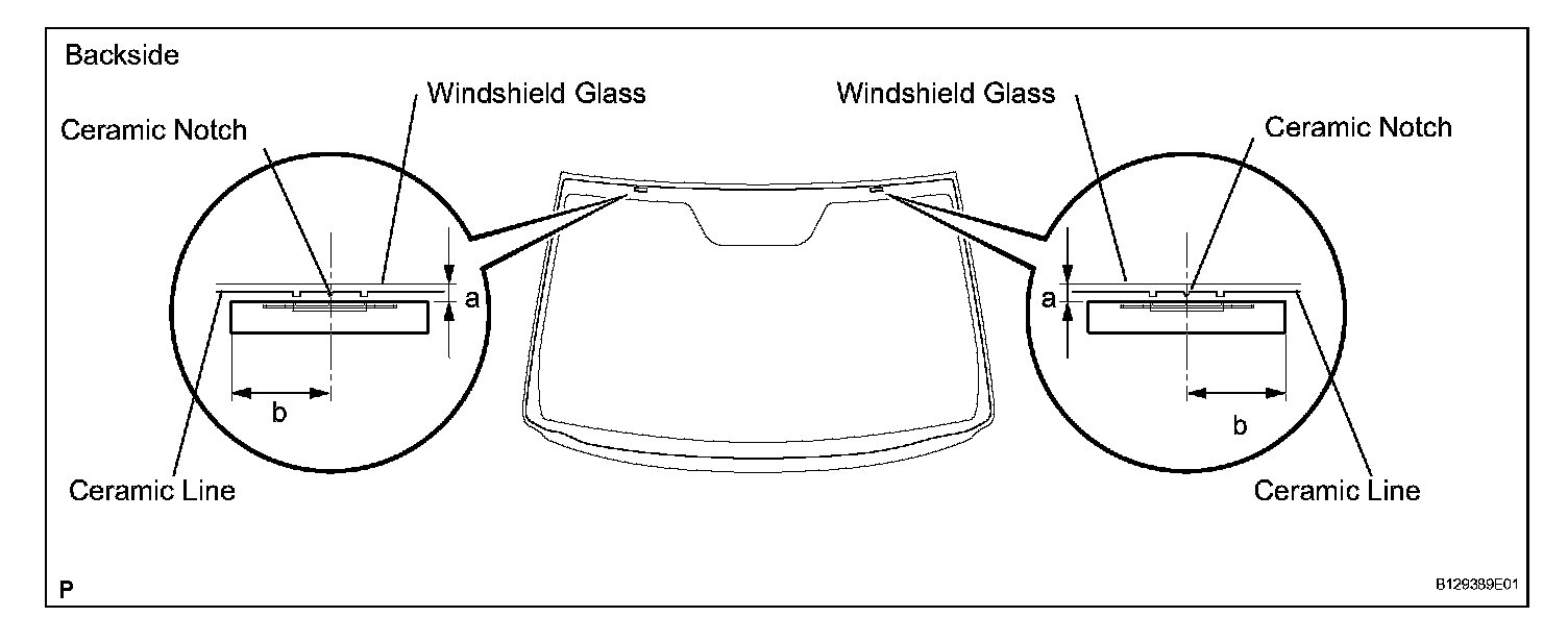 3. Place matchmarks on the glass and vehicle body on the locations indicated in the illustration.