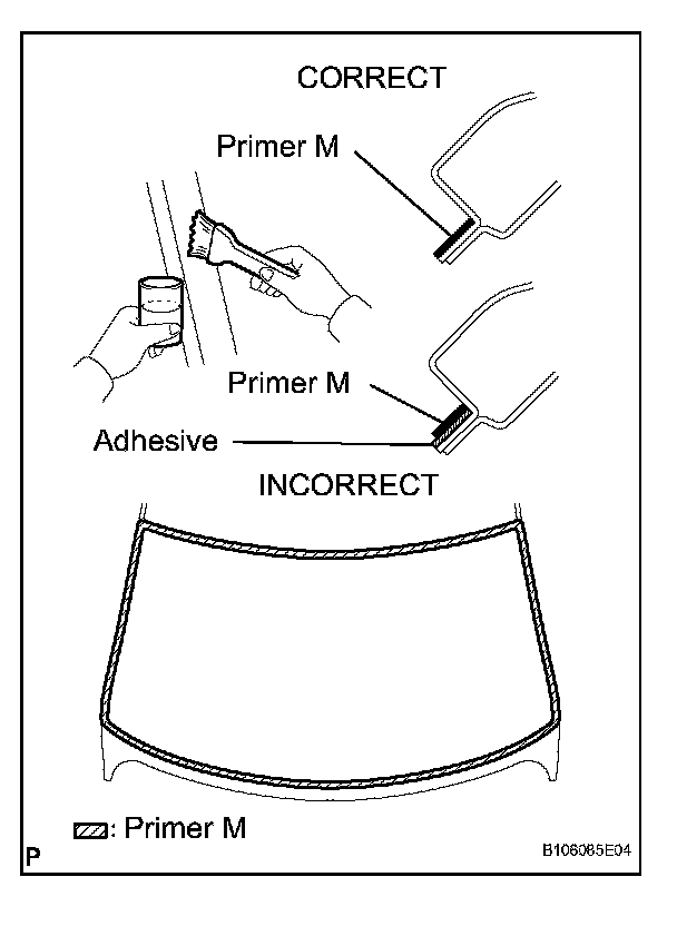 a. Using a brush or sponge, coat the edge of the glass and the contact surface with Primer G.