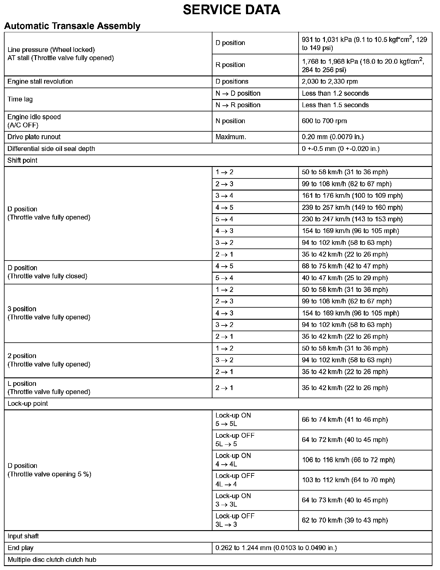 Automatic Transaxle - Service Data (Part 1):