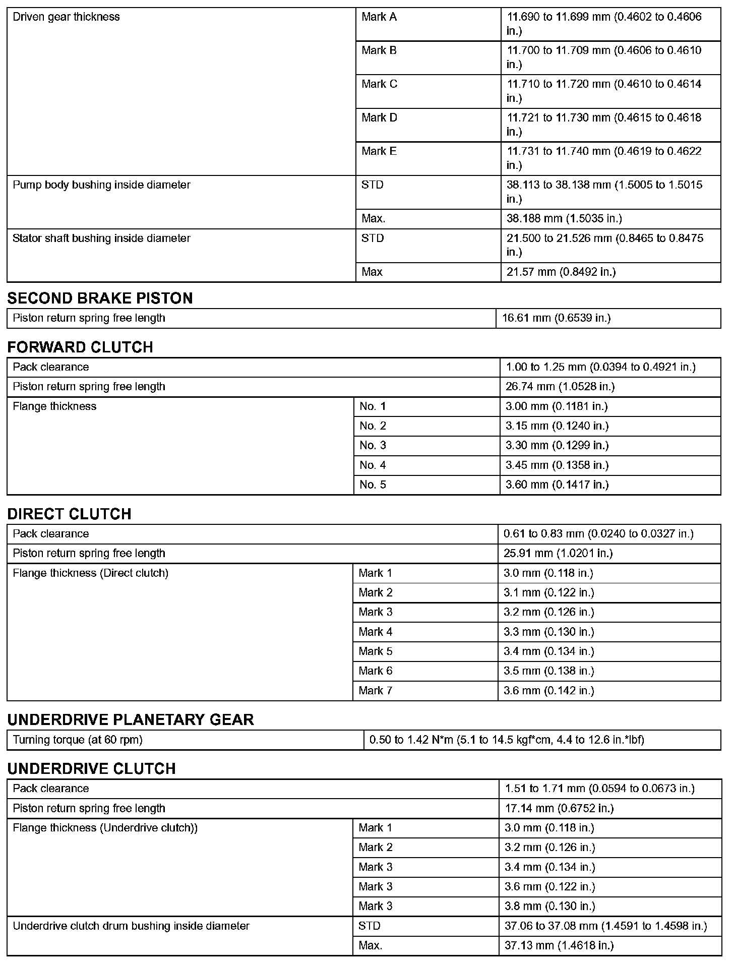 Automatic Transaxle - Service Data (Part 2):