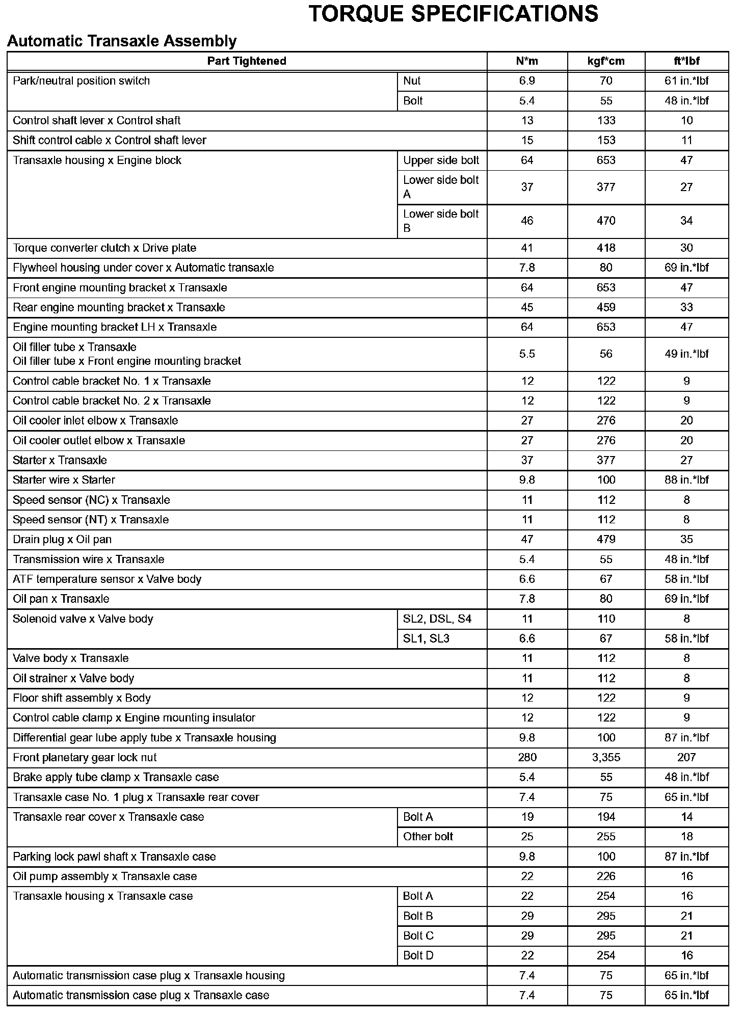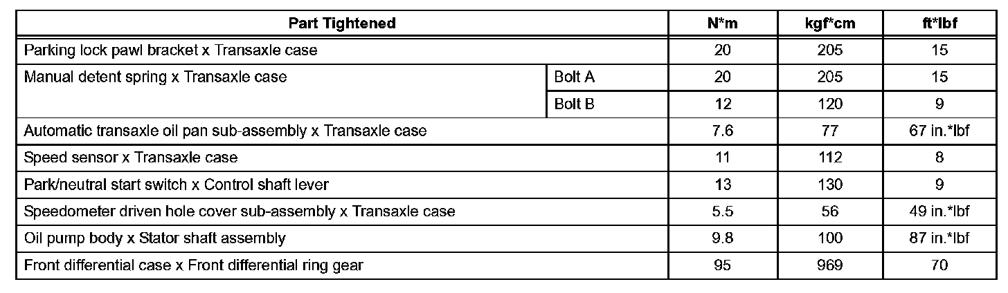 Automatic Transaxle - Torque Specifications (Part 2):