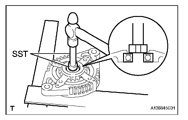 b. Using SST and a hammer, tap out the bearing.