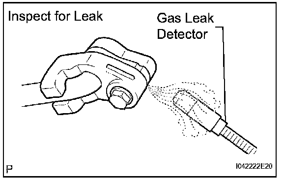 c. Using a gas leak detector, inspect for refrigerant leak from the refrigerant lines.