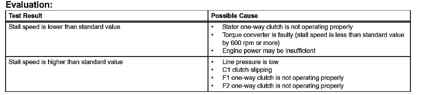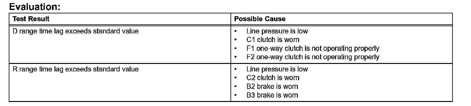 HINT: This test is to check the condition of the direct clutch, forward clutch, 1st brake and reverse brake.