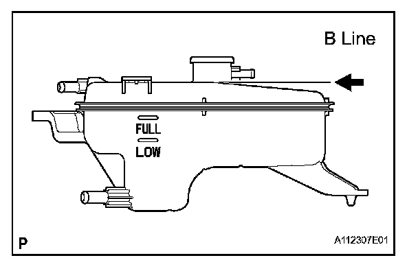 ^ Immediately after starting the engine, if the radiator reservoir does not have any coolant, perform the following: 1) stop the engine, 2) wait until the coolant has cooled down, and 3) add coolant until the coolant is filled to the B line.