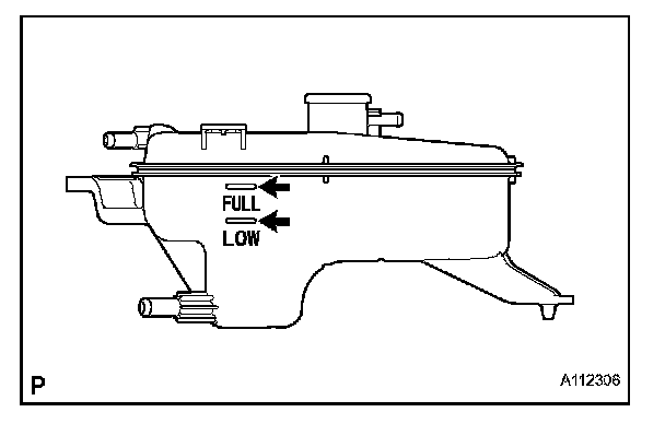 If the coolant level is above the FULL line, drain coolant so that the coolant level is between the FULL and LOW line.