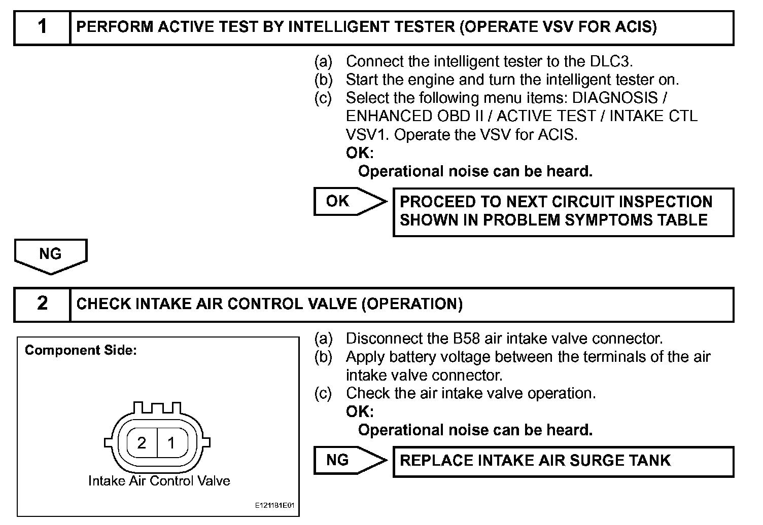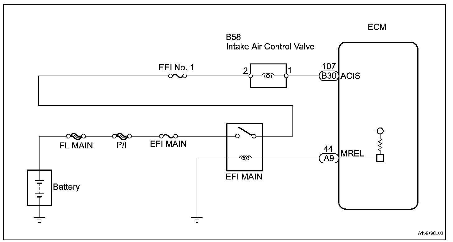This circuit opens and closes the Intake Air Control Valve (IACV) in response to changes in the engine load in order to increase the intake efficiency (ACIS: Acoustic Control Induction System).