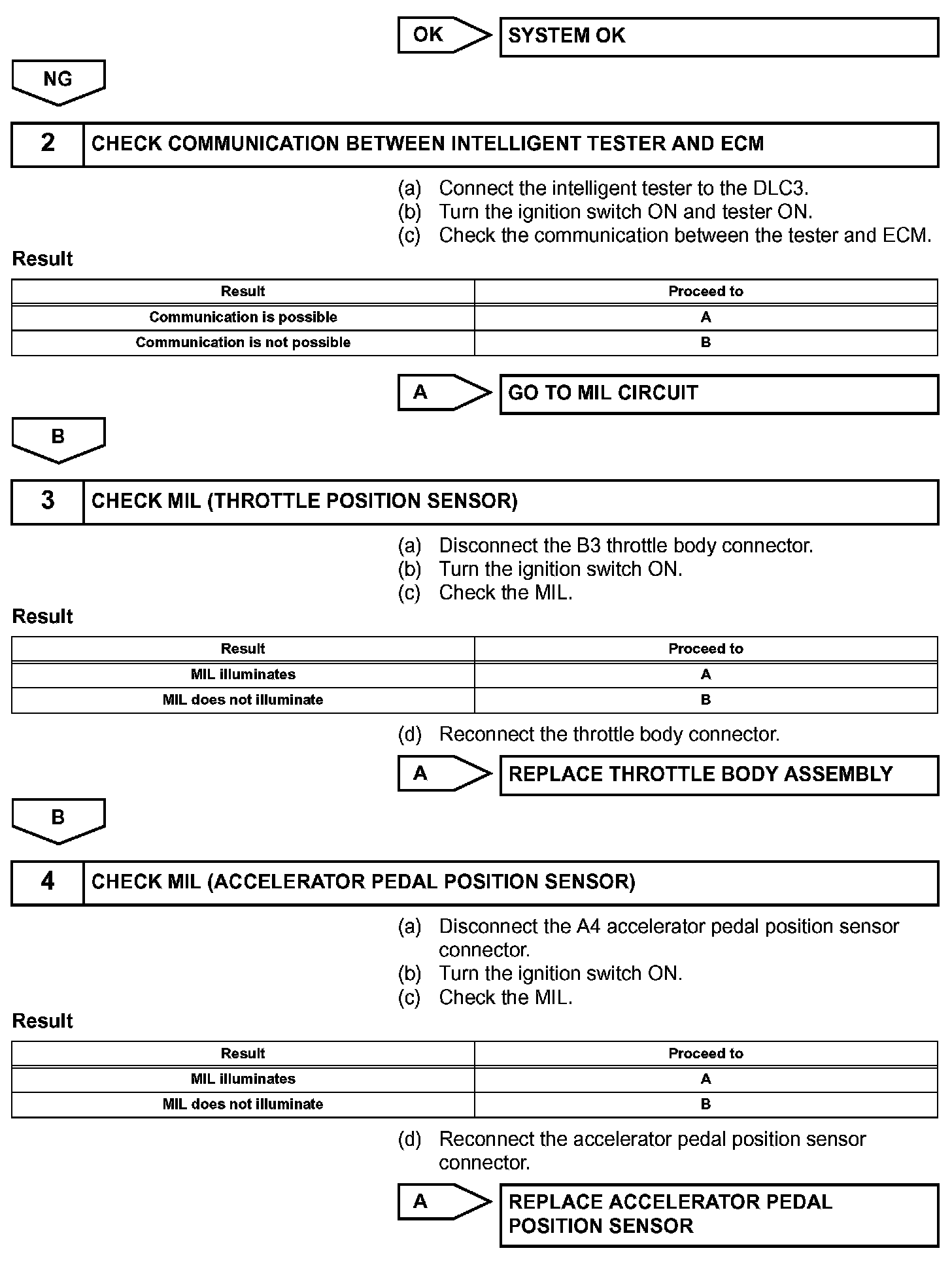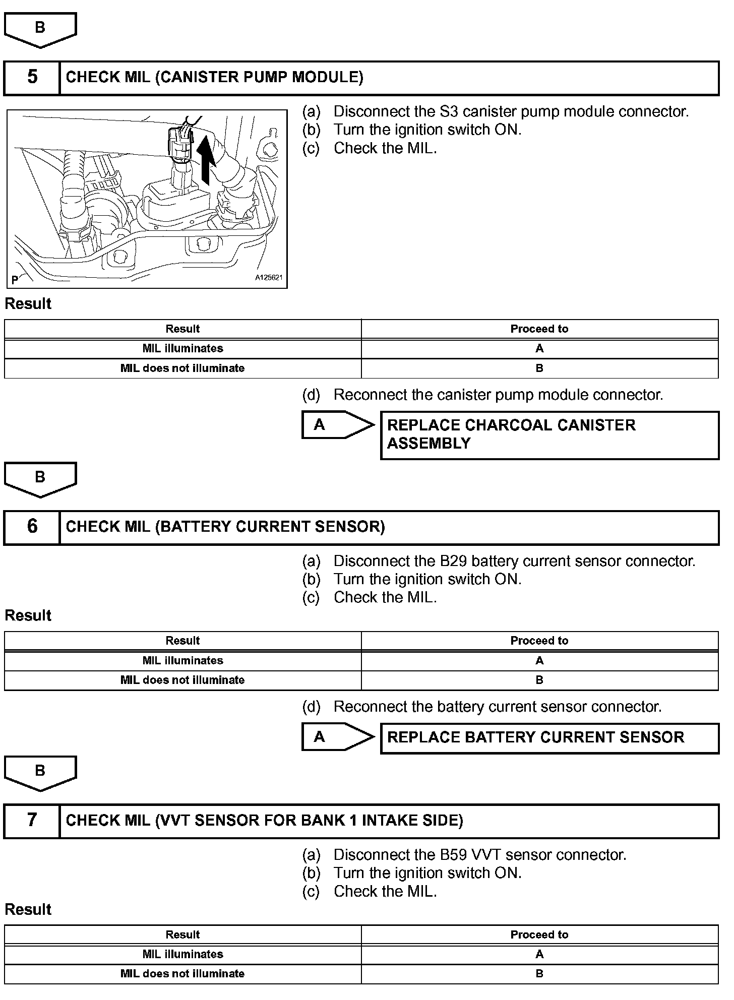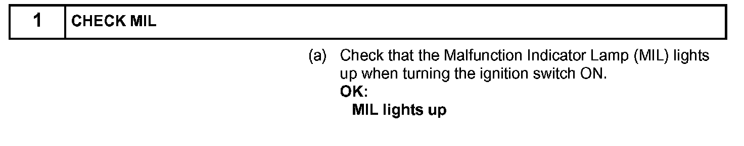 HINT: Under normal conditions, the MIL is illuminated for several seconds when the ignition switch is first turned ON. The MIL goes off when the engine is started.