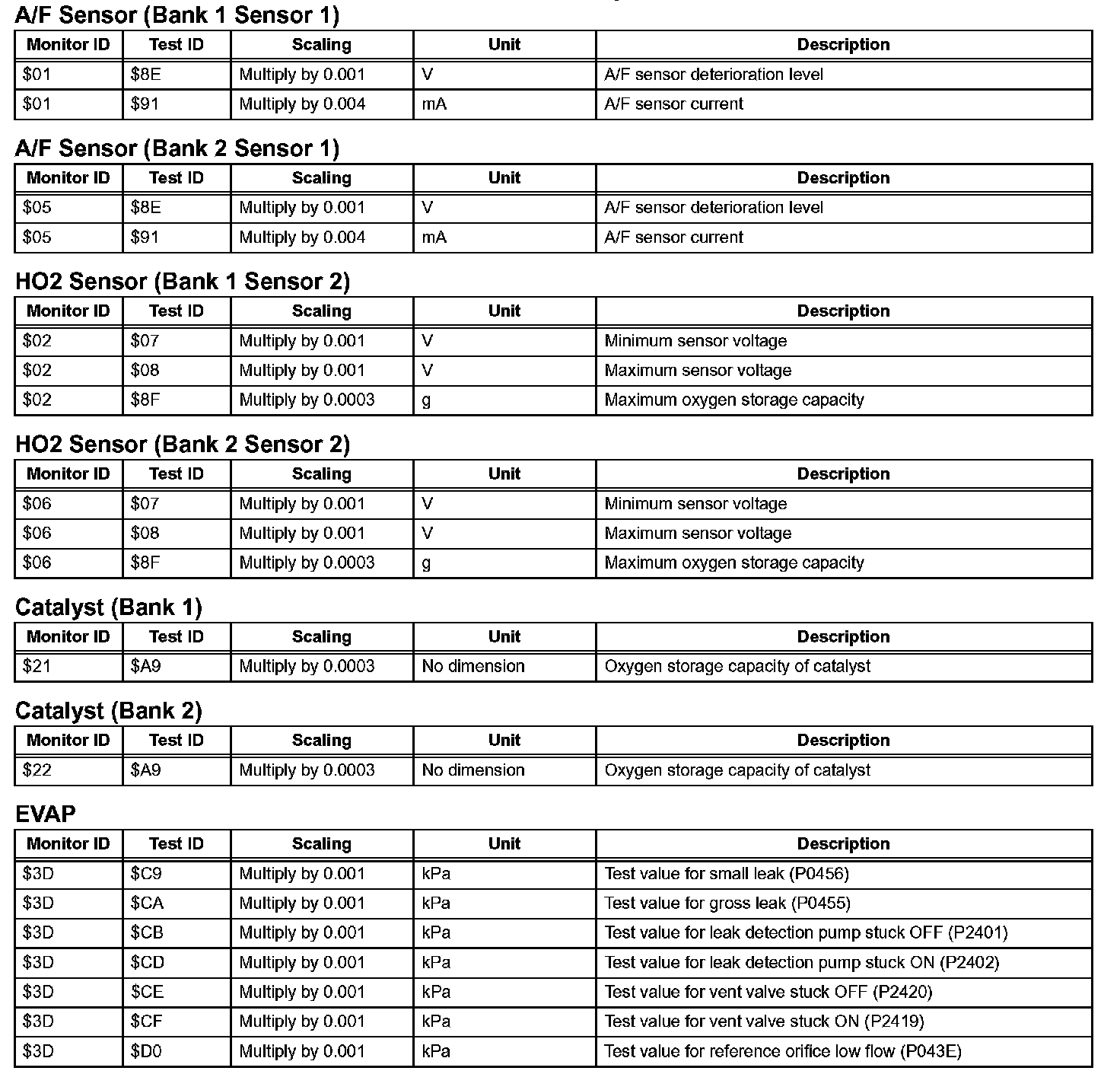 If you use a generic scan tool, multiply the test value by the scaling value listed.