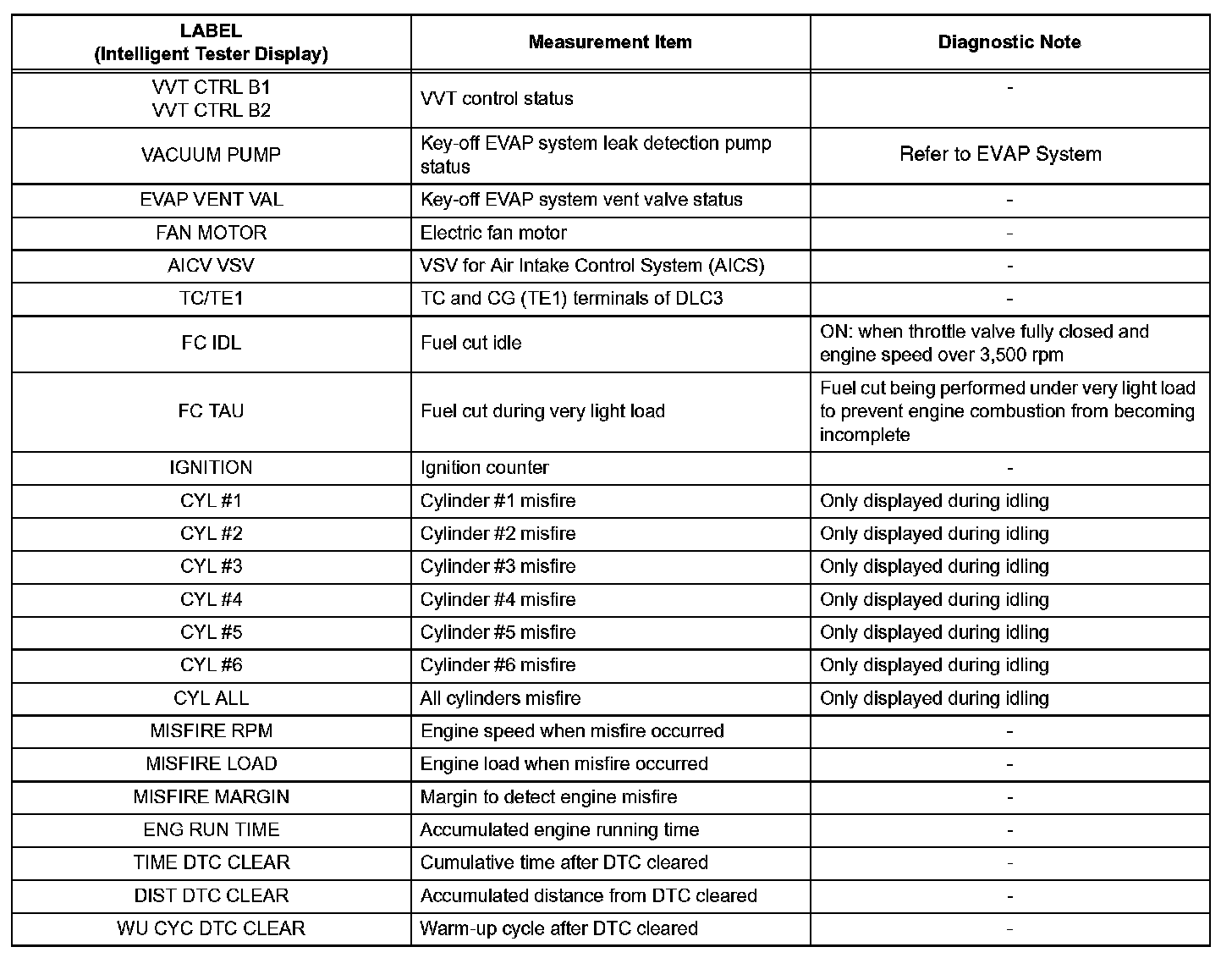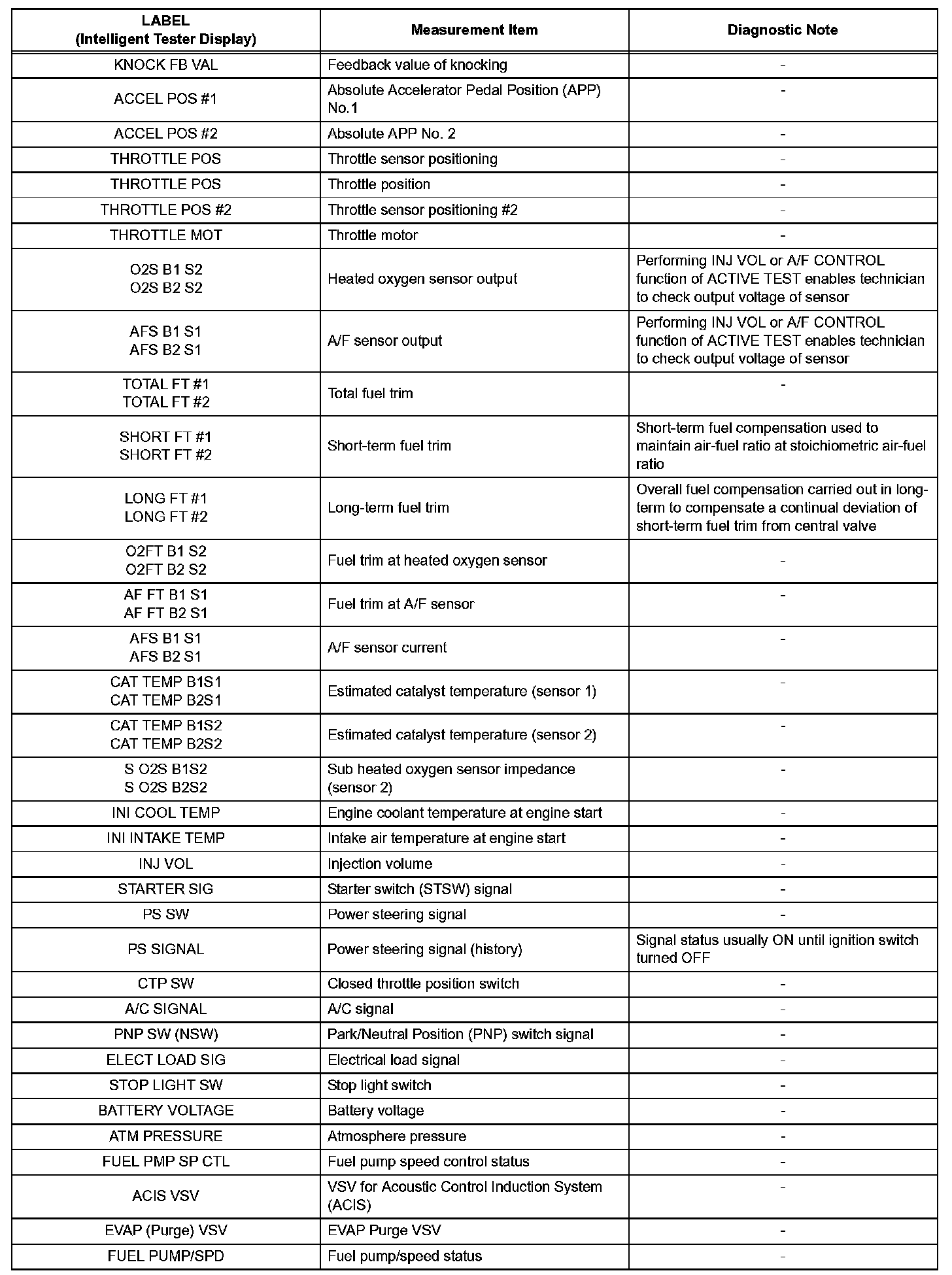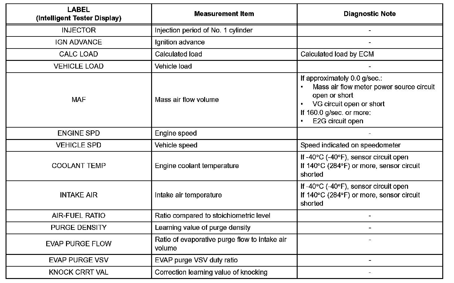 Freeze frame data records the engine conditions (fuel system, calculated load, engine coolant temperature, fuel trim, engine speed, vehicle speed, etc.) when a malfunction is detected. When troubleshooting, it can help determine if the vehicle was running or stopped, the engine was warmed up or not, the air-fuel ratio was Lean or Rich, and other data from the time the malfunction occurred.