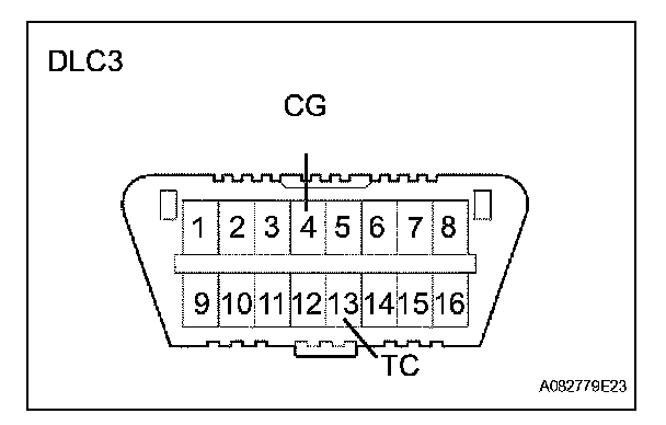 (3) Using SST, connect terminals 13 (TC) and 4 (CG) of the DLC3.