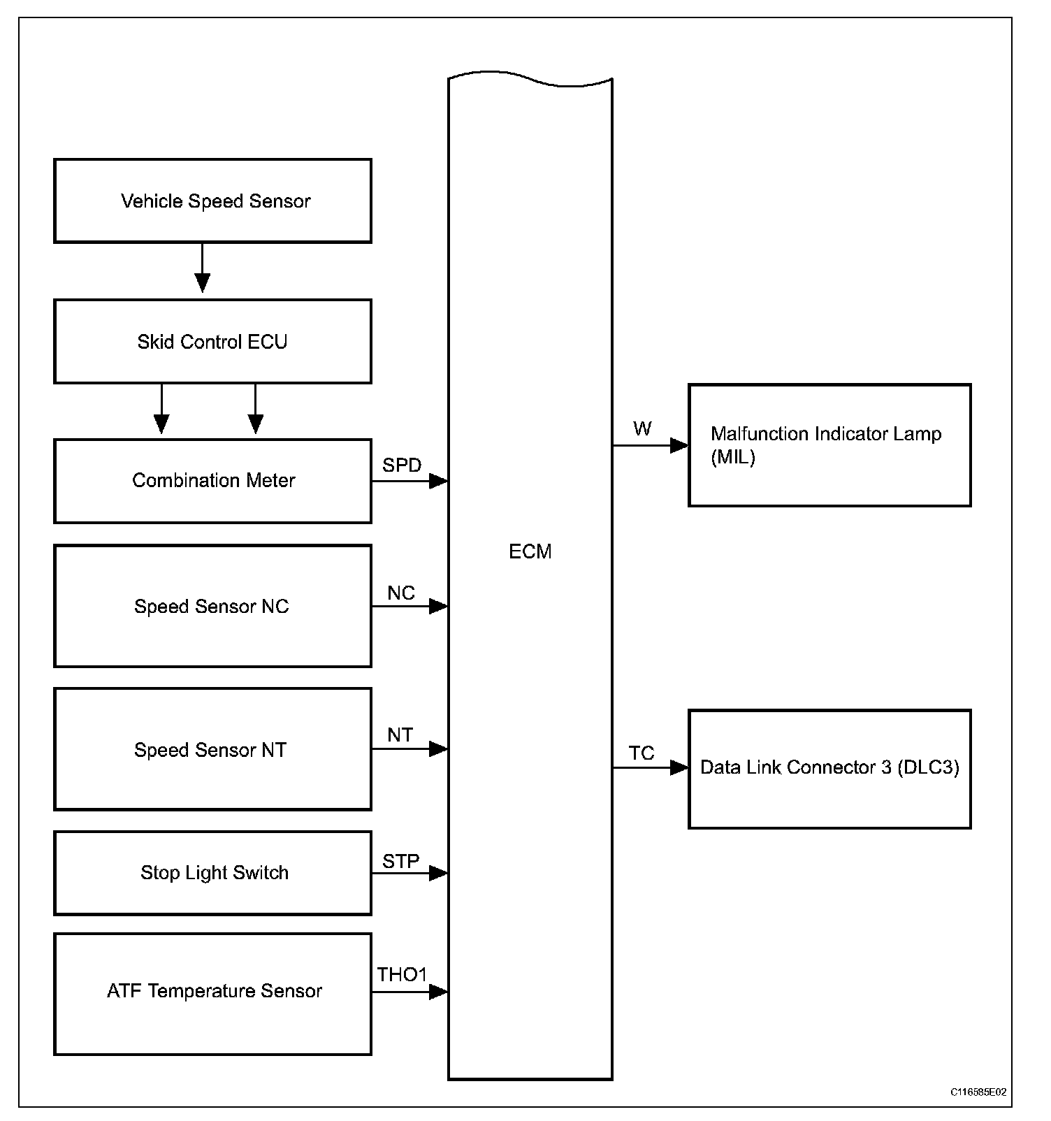 SYSTEM DIAGRAMThe configuration of the electronic control system in the U151F automatic transaxle is as shown in the following chart.