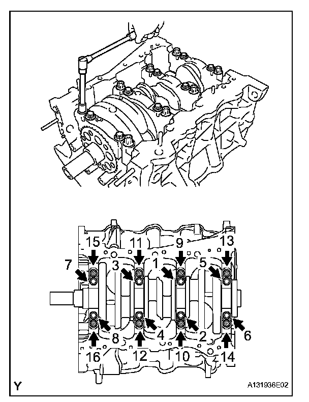 HINT: The main bearing cap bolts are tightened in 2 progressive steps.