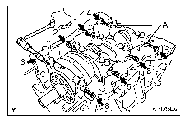 Tighten the bearing cap bolts another 90° in the order shown in step 1.