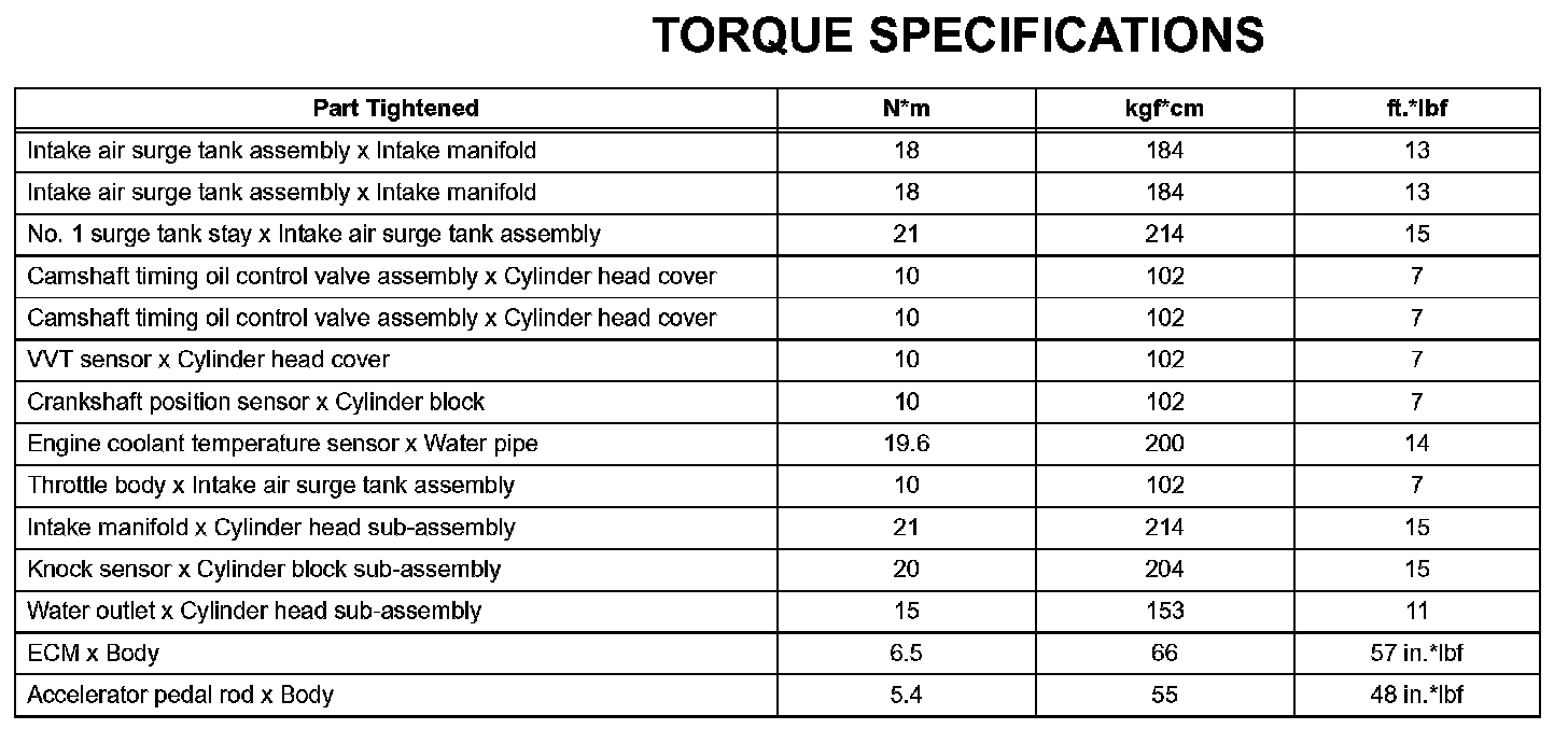 Engine Control System - Torque Specifications: