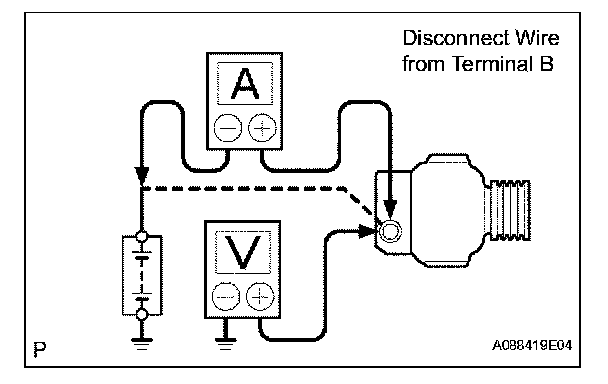 1. Disconnect the wire from terminal B of the generator, then connect it to the negative (-) lead of the ammeter.