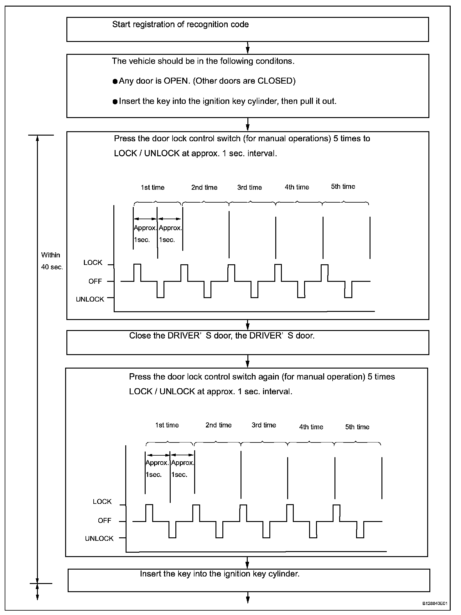 2. Follow the chart to register the transmitter recognition code at the wireless door lock control receiver.