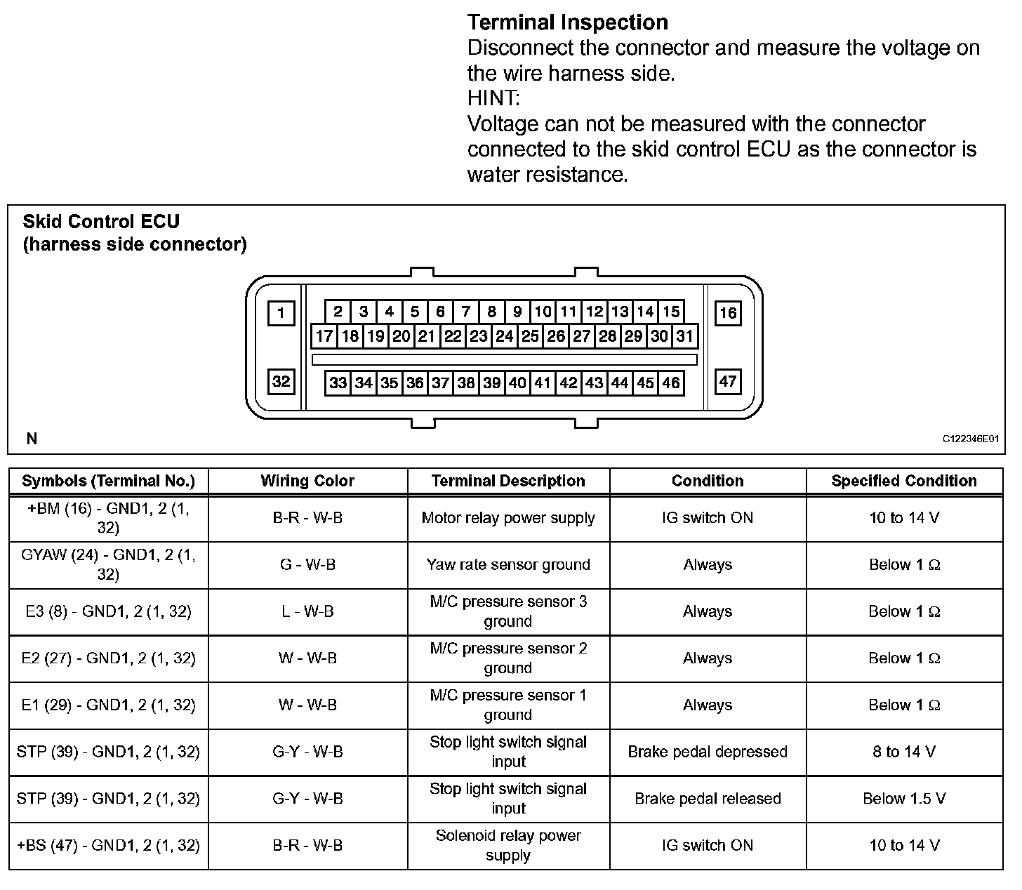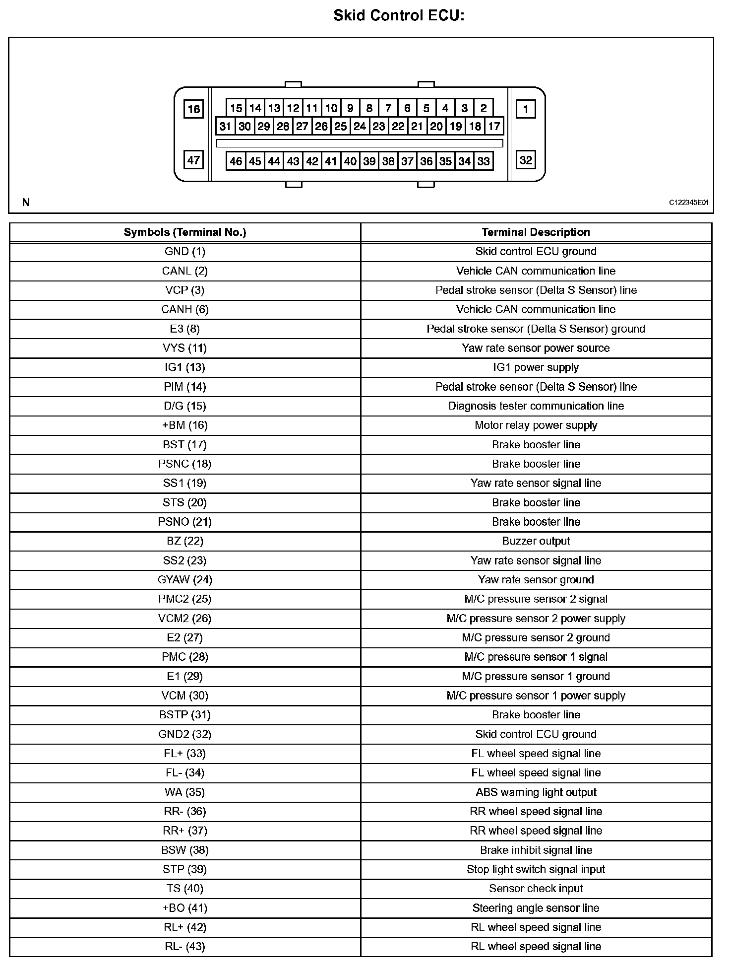 Terminals Of Control Module/Pinouts - Skid Control ECU (Part 1):