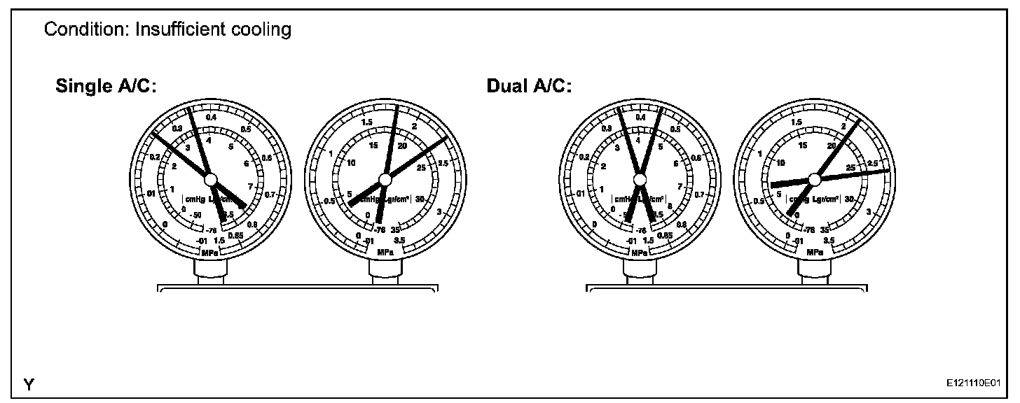 a. This is a method for checking the A/C system by using a manifold gauge set. Read the manifold gauge pressure when the conditions below are met. Test conditions: