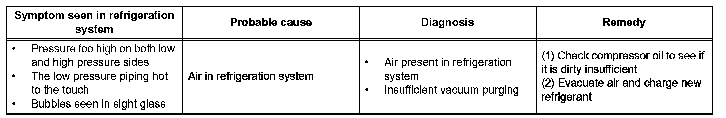 NOTE: These indications are shown when the refrigeration system has been opened and the refrigerant has been charged without vacuum purging.