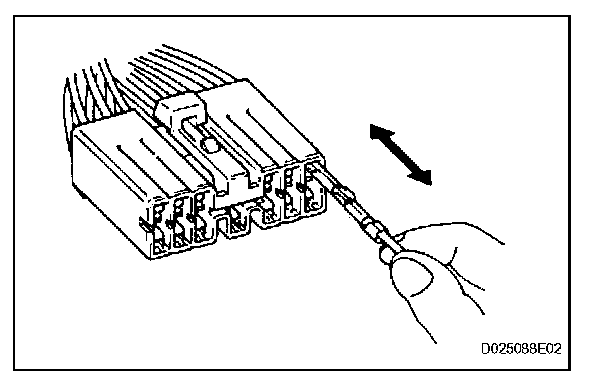 2. If there is abnormal contact pressure, replace the female terminal. If the male terminal is goldplated (gold color), use a gold-plated female terminal; if it is silver-plated (silver color), use a silver-plated female terminal.