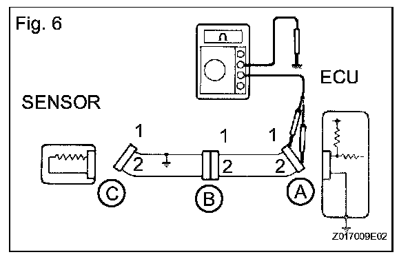 1. Disconnect connectors A and C and measure the resistance.