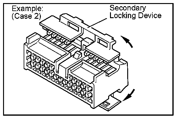 b. Use a special tool or the terminal pick to unlock the secondary locking device or terminal retainer.
