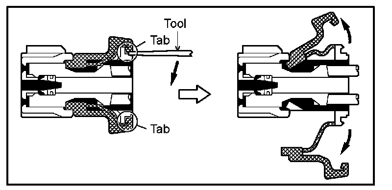 a. Locking device must be disengaged before the terminal locking clip can be released and the terminal removed from the connector.