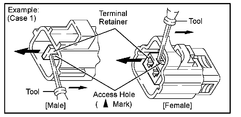 Type which cannot be pulled as far as Power Lock insert the tool straight into the access hole of terminal retainer as shown.