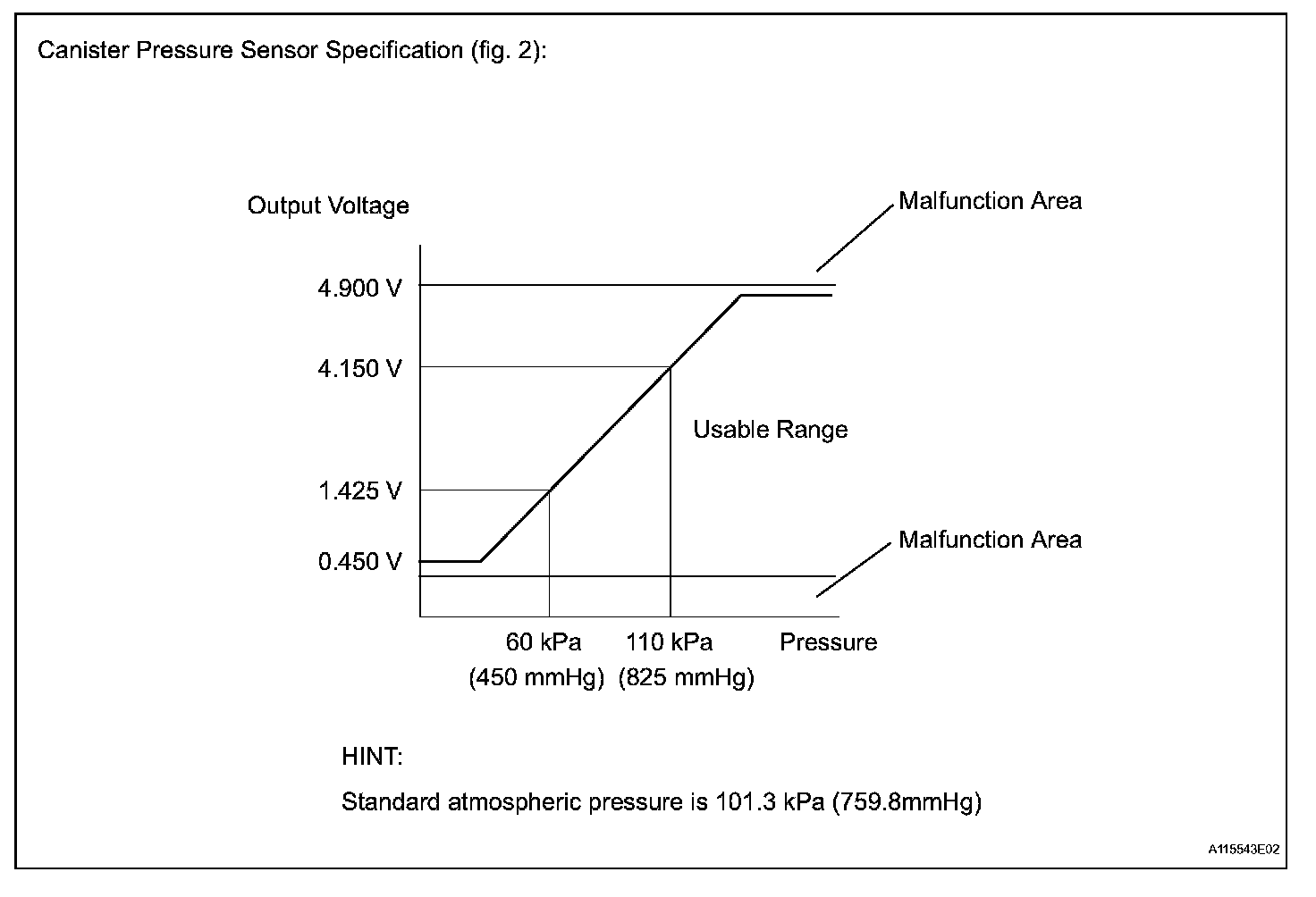The vent valve turned OFF (open) and the EVAP pressure is then measured. If the variation in the pressure is less than 0.5 kPa (3.75 mmHg), the ECM interprets this as the purge VSV being stuck closed, and illuminates the MIL and sets DTC P0441 (2 trip detection logic).