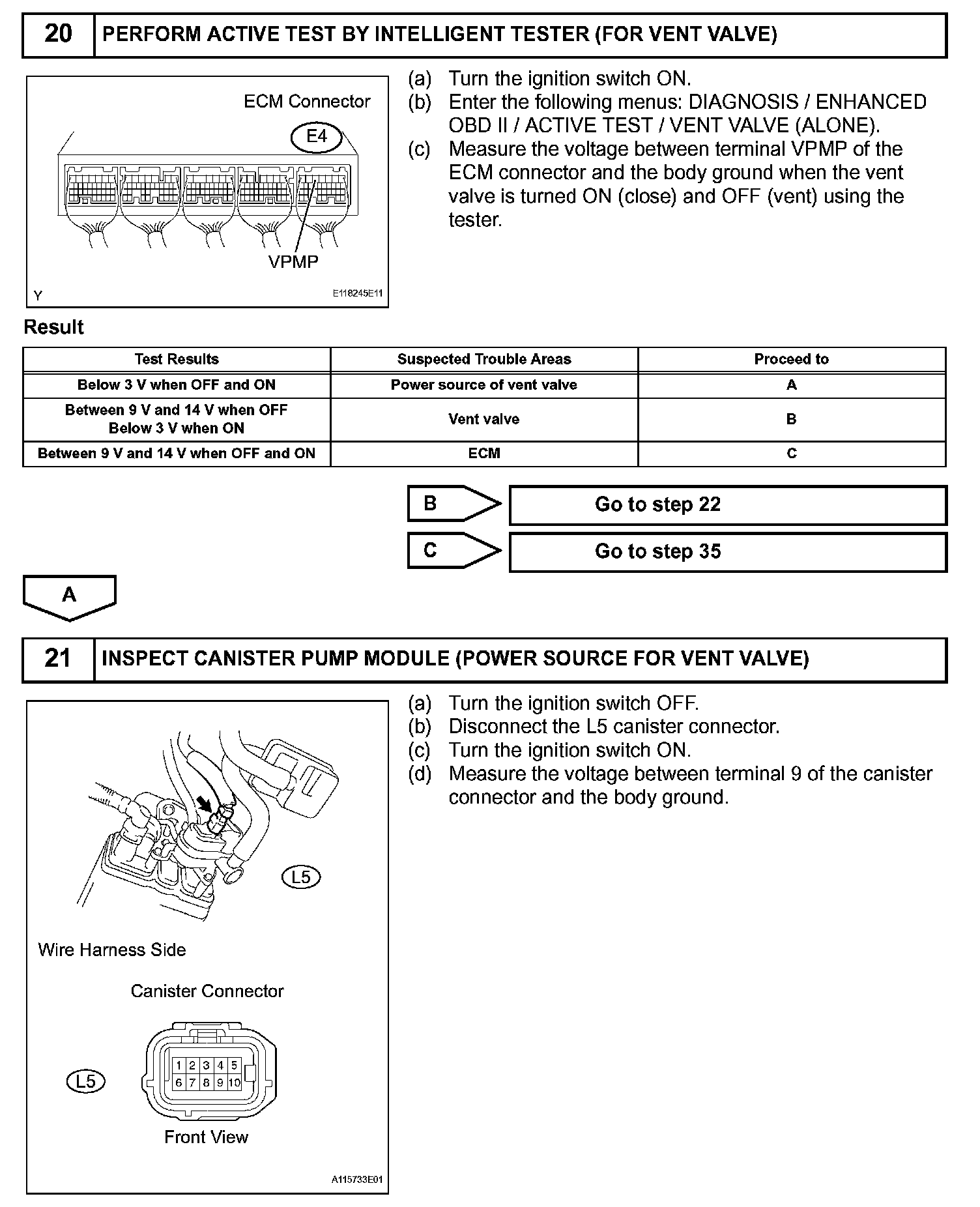 NOTE: The intelligent tester is required to conduct the following diagnostic troubleshooting procedure.