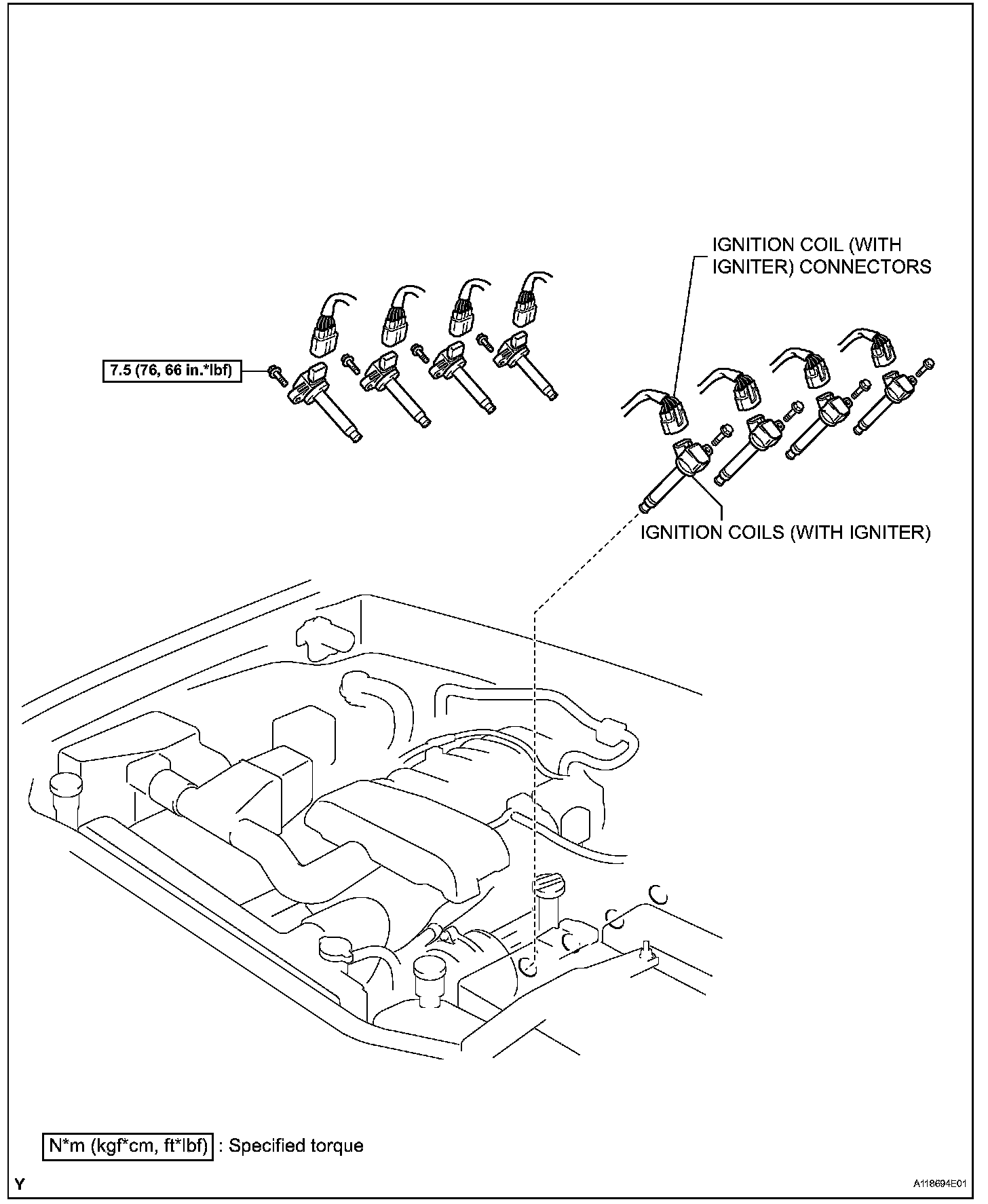 Torque: 7.5 N.m (76 kgf.cm, 66 in.lbf)