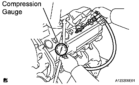 3) While cranking the engine, measure the compression pressure.