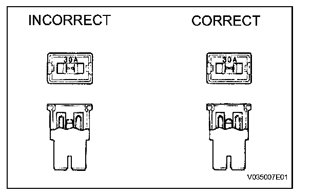 1. When inspecting a fuse, check that the wire of the fuse is not broken.