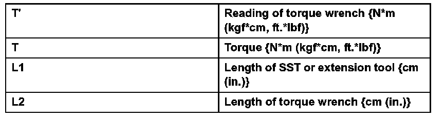 1. Use the formula below to calculate special torque values for situations where SST or an extension tool is combined with a torque wrench.